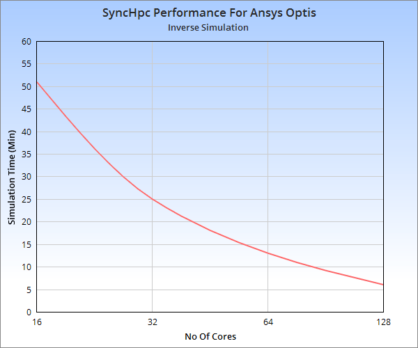 SyncHPC Team executed various tests on cloud based scalable HPC. Both ‘direct’ and ‘inverse’ type of simulations were run on SPEOS. Interestingly, performance of the selected problems improved almost linearly as the number of CPU cores are increased.