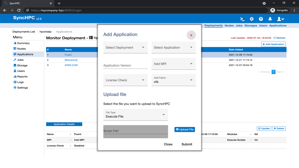 SyncHPC supports many commercial and open source applications. It helps to add and manage a various number of HPC applications with the user’s own HPC application licenses.