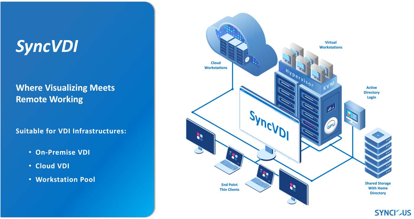 - The use case for SyncVDI on a public cloud is for an organization that needs NVIDIA GPU-based high-end workstations but does not want to invest in physical hardware and maintain it.